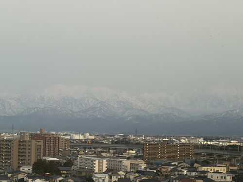 満腹になったところで天気もよいので富岩運河親水公園に行こうと歩きました。途中で雪山が見えて寒さも無いしいい気分でした。