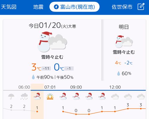 明日の天気予報を見ると雪が降って寒くなりそうです。