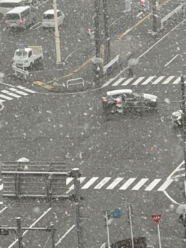 朝からこんな感じの雪でしたが、道路にこそ積もらないものの車の上などはかなり雪が積もっていました。