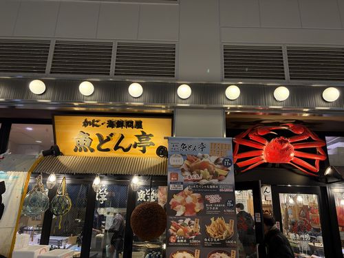 ホテルのテレビにチェックアウトまで10分を切りましたとの表示が出たのでチェックアウトしてちょっと早めのお昼ご飯を食べにきときと市場とやマルシェののれん横丁にある魚どん亭に入りました。
