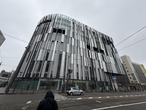 コインロッカーに荷物を預けて市内電車に乗って西町まで行き、ガラス美術館に行きました。外観はこんな感じで隈研吾氏のデザインとしては、あれ?と思う無機質なデザインです。