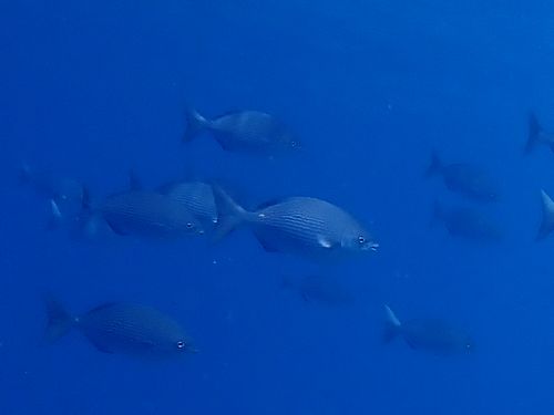 水深の浅いところをイスズミが列になって泳いでいきました。