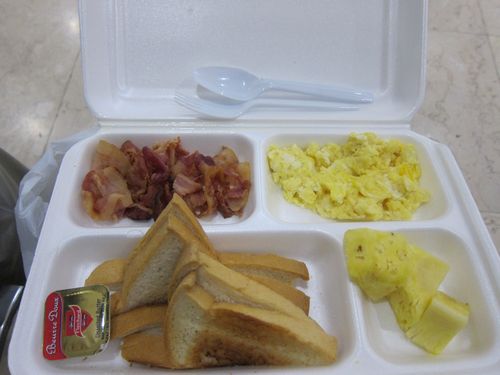 とりあえず搭乗までは時間が少し出来たのでチェックインカウンターの前のベンチでホテルの作ってくれた食事を頂きました。