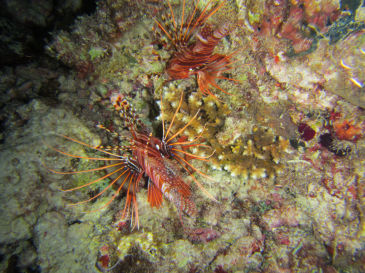 すでに他のダイビングドーニが2艘来ていて、潜ると水中はライトがあちこちで光っていて綺麗です。