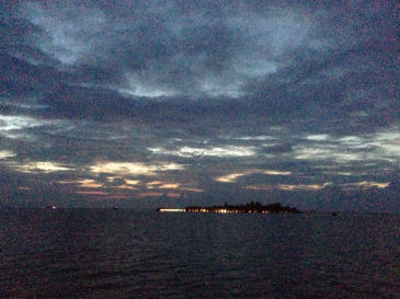 一度は寝付いたものの結局2時半頃から眠れずに4時半ころから後部デッキに出てコーヒーとクッキーとバナナでお腹を満たて夜が明けるのを見ていました。