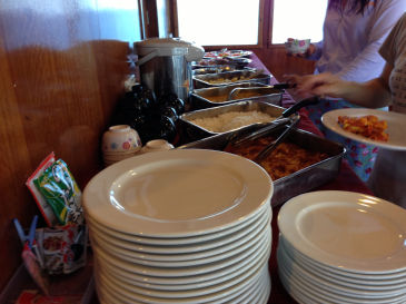 そして、夕飯です。カレーがおいしいです。私たちはレストランで食べましたが、後部デッキで食べている人も大勢いました。
