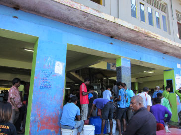 起床が6時半と指定されていましたが、それより前から船が移動を初めてローカルの島の港に入ります。なんでも新しいスタッフが今日から乗り込むとのことで、そのピックアップのようです。