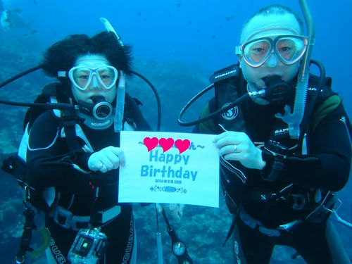 そしてこの日はかみさんの誕生日だったのですが、水中でお祝いをしてくれました。