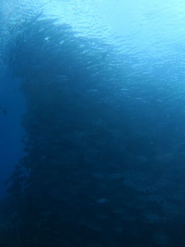しばし休憩の後3本目も筆ん崎に潜ります。しつこくギンガメアジのトルネードです。