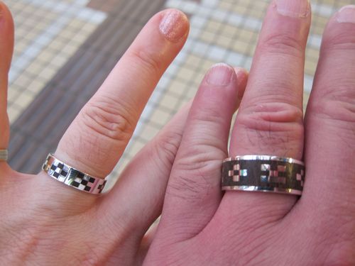 実は今回のダイビング旅行は結婚30年記念の旅行でした。夫婦で以前海想で買ったマンタのリングを左手薬指に付けていたのですが、だいぶ傷んで来たので新しくミンサー織の「いつ(五つ)の世(四)までも私と共に」のデザインの指輪を買いました。お店の人が「つけて行かれますか」というので早速つけてみました。