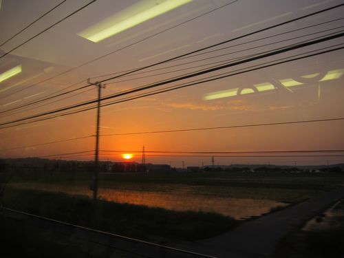 第3ターミナルから第2ターミナルへはバスを利用しました。空港第2ビル駅に行くと京成の羽田空港行きがすぐに来ました。ちょうど夕方できれいな夕焼けが車内から見えました。