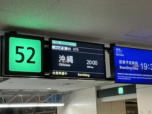 まあそれでも那覇行きの便は予定通りに飛びそうなので駅へと向かいます。この日は夜出発の便を取っていたのでもう夕方です。駅に着いてスマホを見ると知らない番号から着信があったようでした。折り返し電話をするとダイビングショップからの電話で明日のダイビングは慶良間は波があるので恩納村にしますとのことでした。とりあえず潜れそうと分かって安心したところで羽田空港行きの電車に乗り込みました。