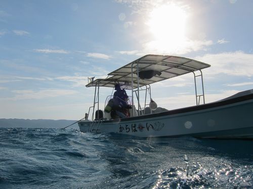 午後からは早速ダイビングです。ダイビングショップはからはーいさんにお世話になります。1本目は久場北で潜りました。地形を楽しんだあとにサンゴの元気な姿を見て楽しみました。