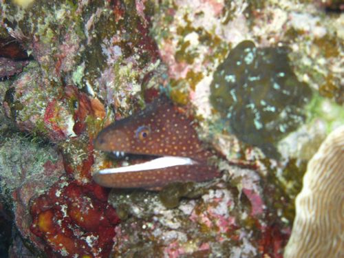 今日は朝起きると雨です。しかしその雨にもめげずにボートは出発しました。ボートがニシバマに入るとスピードを落として1本目はニシバマです。アザハタの根でアザハタと沢山のエビを楽しみました。
