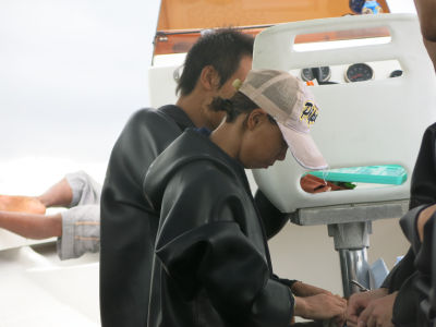 今日のボートは平均年齢高めかつ女性比率多いということで、みなさん日焼け対策万全です。