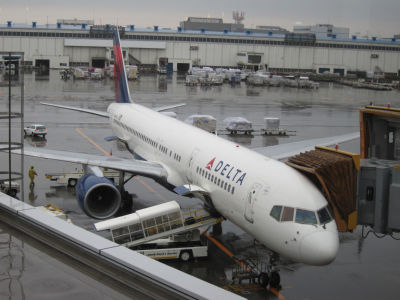 今回はデルタの直行便を利用します。Boeing757-200のDL97便は定刻にきっちりタラップを離れて旅の始まりです。