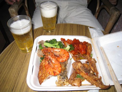 シャワーをあびてから、2人で1つのお弁当をつまみにビールを飲んで夕飯を安上がりに済ませました。